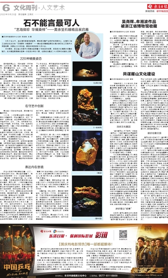本次展览,浙江省工艺美术大师黄余呈带着37年的创作成果,来到家乡乐清展示石雕的魅力。此次精品展是黄余呈第一次在家乡举办个展,也是他为喜迎二十大而举办的献礼之展。