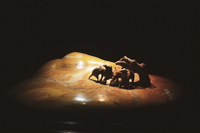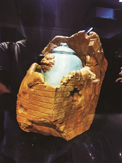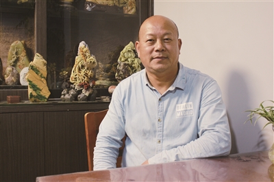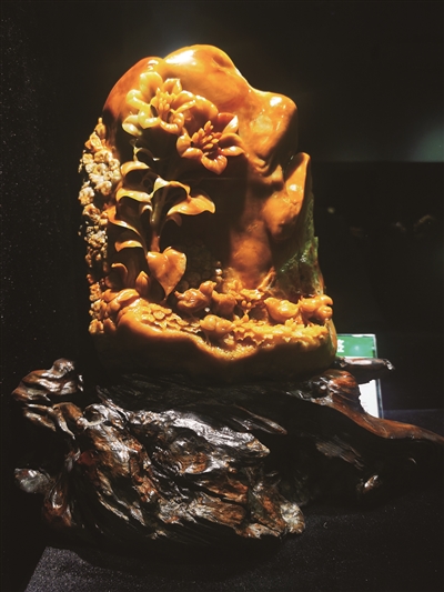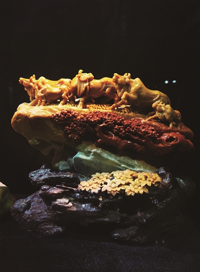 市民杨先生拿着手机,在展厅里转了一圈又一圈,驻足于《春韵》雕刻作品前,对着作品从整体到特写不停拍摄,“黄大师的作品精美又富有创意,把石头本身的造型和色彩巧妙结合,视觉冲击力极强。”