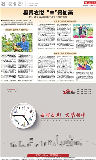 今天是秋分时节,也是我国第5个农民丰收节。连日来,乐清市融媒体中心记者随农技专家到田间地头,倾听乐清大地农业强、农村美、农民富的幸福故事。