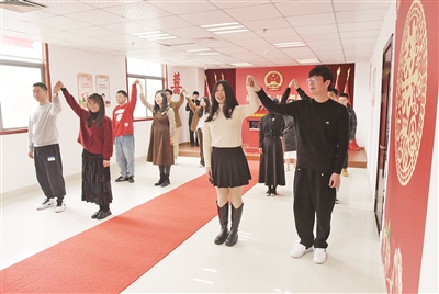 本报讯(乐清市融媒体中心记者 黄子嘉)昨天,市民政局婚姻登记中心迎来登记结婚的小高峰,共183对新人登记结婚,喜结良缘。“死生契阔,与子成说,执子之手,与子偕老。”随着一阵阵宣誓声,新人礼在市婚姻登记中心举行,12对新人在众人的见证下许下对彼此的约定,并领取了结婚证。