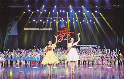 从《追光者》到《星辰大海》,从《我们的祖国是花园》到《红色先锋》,从《只此青绿》到《碇步桥水清悠悠》……整场展演分“追随光”“成为光”“绽放光”三大篇章,以少儿舞蹈为主,还特邀成人表演。唯美的音乐、灯光下,独舞、双人舞、三人舞、群舞一一上演,或轻盈旋转,或腾空跳跃,充满韵味,令人赞叹,为观众们呈现了一场视听盛宴。