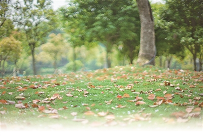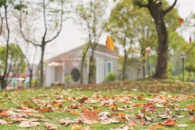 叶落无声。郑佰洪摄于柳市镇柳南村公园。