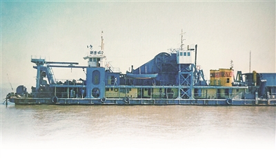 这艘船的船首装有链斗式挖泥装置,启动之后,四十四只挖泥链斗可以连续地把带有蛎壳的泥浆从十到十五米深的海底挖起,自动倾入筛洗装置……然后通过运输机装入运输船运往陆地。