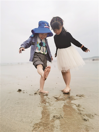 天晴晴海蓝蓝,光着脚丫踩沙滩。 孔丽琴 摄