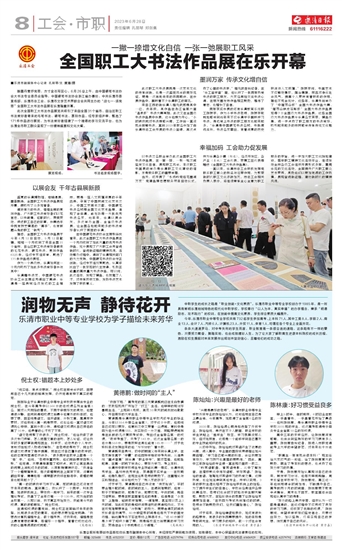 此次职工大书法展既是一次艺术文化的传承创新,也是一次盛世风采的美好见证,更是一次奔赴未来的共同期许。在参展作品中,踊跃着不少乐清职工的面孔。