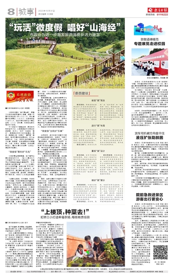委员郑峰:培育多条微度假精品路线,推出一批城市公园和郊野公园旅游线路和休闲项目,做好城市微度假休闲。以“高颜值、微度假”为导向,建设集康养度假、文创艺术、体育运动、科普研学、民俗娱乐等多功能于一体的具有较高国际水准的“微度假”旅游目的地。