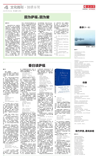 萨福是诗人。如果说荷马史诗里的“英雄男高音”,那么萨福是抒情诗里的“美丽女低音”。她的声音穿透芦纸对我们说话,残损而坚定。柏拉图说“萨福是第十名缪斯”,有人说她是“不朽的诗人”。人们太喜欢萨福了,甚至虚构她头发的颜色:堇色头发,可在一部传世的诗作里她的头发是白的。我们现在看见的所有萨福的画作或雕塑均为作者想象,这又有什么关系呢?在我的中学时代历史教科书里,“萨福是第十名缪斯”被我记熟,我从没有读过她的一行诗。后来我读过不少伟大的希腊现代诗人:埃利蒂斯、塞菲里斯、卡瓦菲斯、扬·里索斯等等,萨福还是没能进入阅读范围。她生活的年代太久远了,离我们有2600多年,现在读到的萨福遗诗不一定是萨福本人所写。萨福能否阅读还存有疑问,现今保存在雅典国家博物馆中的一幅五世纪中晚期红陶画,萨福在阅读芦纸文本,这是后人的想象。公元前五世纪末,她的歌诗被收集和书写下来,在长长的芦纸上,字与字之间没有间隔,没有标点,也无分行。有些诗是在后人的引文里才得以保存的。亚历山大学者们整理出九大卷遗诗,在第一卷里约1320行,仅有一首是完整的,其他的都是残诗。阅读这样的文本很困难,用一句形象的话来说:“请你来猜谜”,又好像一次阅读历险,你得开动阅读机器,残缺令我们兴奋,填充让我们激动,尽管你阅读的不过是翻译文本,你不是在一步步逼近罗伯特·弗罗斯特的名言“诗歌是翻译中所丢失的”吗?本诗集收录萨福诗两百余首,有些仅仅是一个词,不忍心割离,让它呈现,因为萨福歌唱爱。