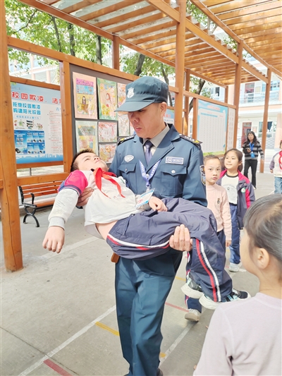 石帆一小总务主任赵秀媚告诉记者,在处理学生问题时,谢福德会化身成一名细心、温柔的保安叔叔。