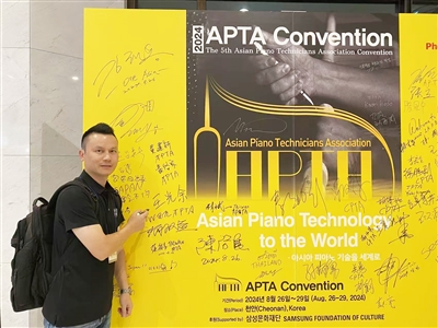 “我从小跟随做生意的父母生活在新疆,小学4年级拜师国家一级作曲家刘澍民学钢琴。那时,家人每年会请调律师上门调钢琴的音准,经调律师的‘魔法手’一调律,我再弹钢琴时,呈现的音色就截然不同。”在那时的王光余心中,调律师就像魔术师一样,让人充满好奇。