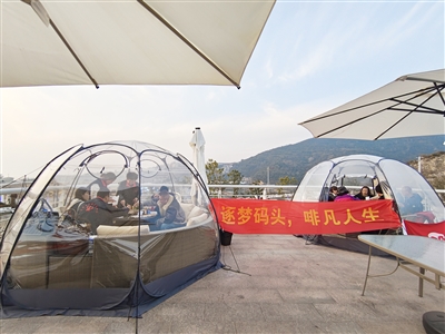 在码头的咖啡馆,大家围坐在一起,品尝着香浓的咖啡。志愿者们与残疾人朋友们分享咖啡文化,讲述咖啡豆的产地和烘焙过程。随着夕阳西下,活动进入了温馨环节——年夜饭。大家围坐在一起,共享丰盛的美食。