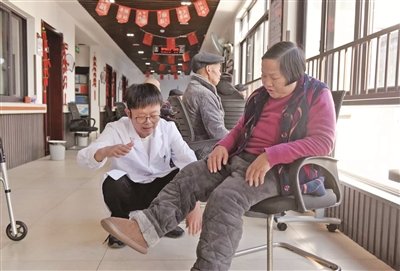 更为难得的是,林建斌说服同为医生的妻子和他一起实现这个心愿。每日6时至8时,他准时出现在养老服务中心,为周边早起的老人免费检查身体,建立“慢病手册”,再去自家卫生室出诊;8时至10时,养老服务中心聘请的医护人员对入住老人进行逐一巡访;下午时间,康复治疗师为有需要的老人进行一对一康复指导;晚上,林建斌的妻子义务承担起了养老服务中心的查房工作。此外,还有全科医生为老人全天候守护……