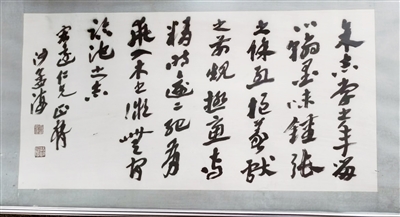 沙孟海赠胡宏远的书法作品,内容是孙过庭《书谱》的摘句“余志学之年,留心翰墨。味钟(繇)张(芝)之余,烈挹羲献之前规,极虑专精,时逾二纪。有乖入木之术,无间临池之志。”