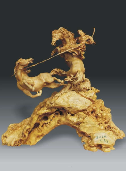 ■记者 黄小双 陈小东是我市黄杨木雕界的一匹黑马,自从2010年重拾黄杨木雕技艺后,其创作的作品屡屡在博览会上获得金银奖,同年,作品《普天同庆》被浙江美术馆以10万元高价收藏,同时被收藏的仅有三件来自我市国家级工艺美术大师的木雕作品。而让人没有想到的是,此前,陈小东只是一位成功的商人。 黄杨木雕界的黑马 11月13日,记者见到了陈小东,戴着眼镜,笑眯眯的,很朴实,就像高高大大的邻家大哥,陈小东谈起了为何重新回到黄杨木雕。 大概是2008年吧,有一次他看到一本黄杨木雕的杂志,而杂志的封面及封底的人物及作品却都来自福建,乐清的黄杨木雕,作品展现的却来自其他地方,这深深触动了这名曾经的黄杨木雕人,陈小东作了一个常人难以理解的决定,将在广州打拼了30多年的生意交给儿子,重拾这个被自己遗忘很久的黄杨木雕技艺。 “当时老婆、儿子都不同意。”陈小东说,“我却认为,如果儿子有能力,自然会将事业发展得更好,如果不成器,即使最大的家产也没有用,就要让儿子锻炼。”陈小东将在广东做得风生水起的生意全然放下,只身回到了乐清。 回到乐清后,陈小东释放了多年积蓄的力量。“我第一次雕刻《普天同庆》时,很多人不相信我会雕,甚至到现在有些人还怀疑。”在陈小东家,摆放着许多泥稿,每一件作品都有陈小东的很多想法,他力求每一件作品都有传承与创新。 “那次我捏好泥稿后,大家都觉得想象力太丰富了,并说这根本不能用黄杨木来表达,尤其是乐女仅用两条飘带来支撑是不可以做到的,于是我拿着一块黄杨木就开始敲坯,既熟悉又陌生的感觉,让我有了半个小时的恍惚。渐渐地,感觉回来了,随着刻刀的上下飞舞,手下初显雏形的作品已让年轻的技师们发出阵阵的惊叹。”陈小东说起当时的情景。 经过十多天的精心雕刻,《普天同庆》以“S”型的构图,精心刻画一位“飞天”乐女的娇姿美态,她的身体呈“U”字型,她右手托着花篮,左手把鲜花散向人间,双目凝视神州大地,脸带微笑,身体健康丰满,小腿脚趾微翘。如同芭蕾演员在空中飞舞的动作,带给人们神态美和曲线美。 此作品一亮相第五届中国东阳木雕竹编工艺美术博览会,引起震动,名不见经传的陈小东竟然如此出手不凡,经专家们评议,荣获“金奖”。 当浙江美术馆提出收藏《普天同庆》时,想不到陈小东竟然不同意,毕竟是36年后,重新雕刻的第一件作品,且自己目前没有多余作品, 听到浙江美术馆要收藏的消息,陈小东却难以割舍,他开始回绝,后来美术馆的馆长许诺如果陈小东用到这件作品可以随时来取时,陈小东才同意。 黄杨木雕界的探索者 后来,陈小东的创作热情一发不可收,创作的《草原春歌》、《三太子戏龙》等作品屡屡在展览会上获奖,作品中流露出的那份灵动总是让人惊艳。 这位成功的商人、这位曾经的黄杨雕刻人何以在短短的时间出了这些优秀的作品,陈小东说年轻时的扎实基础很有关系,虽然几十年没有雕刻,但自己从来没有远离黄杨木雕,出差在外,公务忙完之余,就独自留在宾馆,拿着笔勾勾画画,研究构图、思考钻研,虽然没有具体的创作,但他以这样的方式让黄杨木雕艺术深深地烙在心底,不离不弃。“每一次木雕展览会等我都会跑去参加,甚至还打‘飞的’,看多了自然会有想法。”陈小东说,“其实就是喜欢。” 陈小东的母亲出身乐清木雕世家,舅舅叶润周是著名的工艺美术大师。高中毕业后,陈小东师从大舅父叶岩权。虽然仅是“顺便带带”,但陈小东学起来却格外投入,很快便入了门,仅六个月时间,他的作品已被广泛接受,还在各类比赛中获奖。 1977年,陈小东被江西赣州工艺美术厂相中,邀他到江西发展。这年他仅21岁,被称为“小师傅”。 有一次,他参与《井冈山会师》的群雕工作,负责《建立政权》主题创作,他塑造的毛泽东形象受到了专家一致好评。因为技艺精湛,表现出色,陈小东又被聘往江西省工艺美术研究所,主攻木雕。 因为长期的沉淀,在艺术创造过程中,陈小东灵动地跳跃于传统风格与现代风格之间,将现代时尚元素融入古典文学艺术风格之中,创作出一件件动感飘逸、美观大方的精美作品,引起业界重视。浙江美术馆的专家蔡荣评价,陈小东对人物的造型很敏感,提炼、概括能力非常强,塑形很准确。而陈小东的话说得很纯朴:“我做木雕只是为了爱好,我不为名利。我下一步的目标是开出自己的工作室,目前正在挑选徒弟,希望将黄杨木雕艺术发扬光大。”陈小东说自己选徒弟的标准是也像他一样热爱木雕艺术,能够传承木雕传统。 陈小东的回归 《草原春歌》 陈小东 作 |