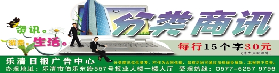 教育培训 ●公办乐清电大,您的学历进修首选!热推政府 学费补助专业——学前教育。学校另设浙大远程、 南开大学、东北师大及社区学院市民素质培训中 心,咨询报名:62525033 QQ:146343508 ●学历进修首选温州大学工商管理、会计、 机电一体化。高升专,专升本。里仁教育柳市 惠丰路86号 电话62722992 QQ549937649 ●北交大远程教育易过13868796070陈 ●高/中学生各科教师一对一精辅 优秀在职教师助你冲刺中考高考, 可试学 13736771201(教育网671201) 综合信息 ●乐清市地税局偷税举报 电话62575000 ●黄杨木雕小红工作室15157771710 遗失声明 遗失清江镇礁头村陈左旺土地使用证,宗地号:025-010-0185-0000,日期:1994年7月7日,声明作废。 遗失柳市镇刘宅村刘日开土地使用证,证号:2-2000-44-03723,宗地号:055-008-0222-0000,日期:2000年9月27日,声明作废。 遗失2009年6月8日核准的乐清市顺乐汽车用品有限公司营业执照(副本),注册号:330382000082628,声明作废。 遗失乐清市同茂电气有限公司国、地税税务登记证(副本),号码:330323104935774、330382080588675,声明作废。 遗失2013年10月21日核准的乐清市同茂电气有限公司营业执照(正本),注册号:330382000287965,声明作废。 遗失四都乡樟岙村万招强土地使用证,宗地号:034-011-0131-0000,日期:1997年10月9日,声明作废。 遗失四都乡樟岙村万招勇土地使用证,宗地号:034-011-0132-0000,日期:1997年10月9日,声明作废。 遗失浙江德熔电气有限公司国、地税税务登记证(正本),号码:330323102910021、330382795580829,声明作废。 遗失大荆镇大园村徐贤波土地使用证,证号:2-1996-02-04778,宗地号:010-002-0028-0000,日期:1996年6月16日,声明作废。 遗失南岳镇上庄村邱友桂土地使用证,宗地号:028-001-0074-0000,日期:1994年7月15日,声明作废。 遗失2012年1月9日核准的浙江键富电子有限公司营业执照(副本),注册号:330382000210461,声明作废。 遗失吴天平国、地税税务登记证(正、副本),号码:330323650327091、330323102164536,声明作废。 遗失卢云胜地税税务登记证(正、副本),号码:330323101278647、330323197710060411323,声明作废。 遗失淡溪镇寺西村黄崇球土地使用证,宗地号:031-010-0044-0000,日期:1995年4月13日,声明作废。 遗失淡溪镇寺西村薛方光土地使用证,宗地号:031-010-0106-0000,日期:1995年4月13日,声明作废。 遗失太平洋财产保险公司乐清支公司13版电脑发票,NO.00518679、00518680、00518687、00518688第二、三、四联,声明作废。 |
