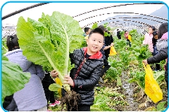 主题大单元课程是以某一综合实践主题(德育)为内核,链接环境、学科、活动等,整合成一种相对模块化的课程样态。学校每学年确定一个主题大单元活动,按阅读文化指导、系列活动安排、学科链接教学和环境设计布置等四个板块进行总体设计。去年实施的“农耕主题”大单元课程,从农耕环境布置开始,学生们自己设计农耕海报、节徽,在校园廊道、楼梯上悬挂农作物,各班级的展示栏、交流厅及寝室布置都充溢着农耕色彩,连班级名称也改为24节气;学校还组织学生们观看农事电影,阅读农谚;课堂教学也融合农耕文化。在活动设计上,从“体育节”趣味农耕比赛项目插秧、锯木头、划龙船……到“文化节”上的扎稻草人、种植农作物、千人诵读农耕诗词……整个课程的整体设计、整合实施,无不切合主题,一时学校到处是田原风情。