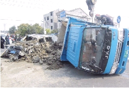 拖拉机侧翻 泥块压扁越野车 本报讯(记者 叶萌 通讯员 施镇东)3月26日中午,在清江镇鲤鱼山村路口,一辆拖拉机侧翻,车上运输的泥块顿时倾倒在一辆越野车上,越野车被压扁了,所幸司机有惊无险。 事发现场监控显示,当天12时30分许,在清江镇鲤鱼山村路口,一辆温州牌照的越野车从鲤鱼山村路口横冲进104国道线,一辆从虹桥往清江方向正常行驶的拖拉机避让不及侧翻,车上载的大量泥块倾倒在越野车上,越野车当场变形,所幸拖拉机和越野车上的两名驾驶员均未受伤。 交警赶到现场时,越野车的柳市籍驾驶员陈某已经顺利从车内爬出来。陈某说,当时他离开鲤鱼山村路口时,注意力分散了,幸亏拖拉机司机张某及时打方向盘,不然后果不堪设想。拖拉机的驾驶员是雁荡人,姓张。张某称,当时他看见陈某驾驶车辆直接冲出来,他本能地马上避让,没想到车子失控侧翻了,拖拉机上的泥块倾倒在越野车上,万幸人没事。 目前,事故的具体原因尚在调查中。 事故现场。通讯员 施镇东 摄 |