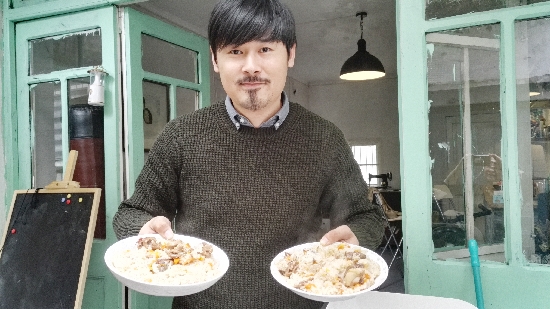 这个乐清女婿来自新疆 会弹吉他会做“十全大补饭” ■记者 杨海虹 文/摄 羊肉串、大盘鸡、拉条子、馕、手抓饭……不少去过新疆的朋友都对新疆美食流连忘返,一想起这些美食,就容易让人陷入对当地风景和民俗的无限回忆。而我们今天要出场的这位民间炒手来自新疆塔城,他叫李海菱,今年34岁,不仅弹得一手好吉他,还烧得一手好菜,已俘获家人和身边不少乐清朋友的心。 民间炒手名片 炒手:李海菱 职业:音乐工作者 厨龄:7年 擅长的菜:大盘鸡、手抓饭 曾吃遍乐清“拉面店” 不论是男人还是女人,做饭时候的样子都是自带柔光。在厨房里忙活着的李海菱一身休闲装打扮,淘米、洗菜、切菜一气呵成,井然有序,一看就是下厨经验丰富的人,特有厨师范儿。 “我从小生活在北疆,饮食上以面食和肉食为主,今天做道手抓饭给你们尝尝。”海菱一边洗羊排一边笑说,他买的羊排是前一天刚从新疆空运到乐清的,是绵羊肉,相对于山羊肉,它的膻味没那么重,每根排骨上的肉有肥有瘦,非常适合做手抓饭。 聊天中得知,至2016年11月8日,是李海菱到乐清生活工作的第10个年头了。2006年他怀着音乐的梦想来到乐清打拼创业,如今他不仅成功经营着一家乐器培训、乐器销售以及录音棚音乐制作为一体的综合性音乐机构,还娶了乐清媳妇,有一个聪明可爱的儿子,将生活和工作都在乐清深深地扎下了根。 “刚来乐清那会儿,没什么朋友,加上饮食习惯不同,吃饭成了我最大的难题。”李海菱说,乐清人都喜欢吃米饭,当他在街头看到有面馆时眼睛都亮了,可当店家端上一大碗面后,他傻眼了,碗里只有粉干不见面条,而粉干在他们老家是用来配菜的,拿来当主食实在吃不习惯。直到后来,他找到兰州拉面店,才稍微安抚了“受伤的胃”,那几年他几乎吃遍了乐清的拉面店。 人的胃口是最怀念家乡的,无论什么时候,身在何处,总是会想念某道家乡菜,它不是什么稀罕物,只是吃习惯了,就成了某种念想。在乐清闯荡的头两年,海菱除想念家人外,非常怀念家乡的美食,为此,母亲时常会邮寄一些风干的羊肉、葡萄干、红枣等食物到乐清。海菱说,只有吃到家乡的味道,思乡情才有所缓解,鼓励他继续前行。 下厨为陪家人解乡愁 “小时候虽然不会烧菜,但每次家里包饺子,我都会主动帮忙。”海菱回忆道,一转眼,自己的儿子8岁了,这些年深感为人父母之不易,于是时常会回想起童年的美好时光。 那时每逢春节,父母都会包好多饺子,可以从正月初一吃到正月十五。包饺子时,父亲揉面团,他擀面皮,母亲拌馅、包饺子等,一家人温馨、团结的画面这些年来在他脑海里挥之不去。也正因此,虽然平时培训工作比较繁忙(培训对象以青少年为主,越是寒暑假、双休日越忙),陪妻子和儿子的时间很少,他内心越发渴盼亲情的温暖,所以他总会趁空闲时,变着花样为家人烧些家乡菜,在陪伴妻子、儿子的同时,也为自己解解乡愁。 “儿子随我爱吃肉,我是在他一岁后开始学烧家乡菜的,他也特爱吃。”海菱说,虽然以前经常看母亲下厨,但真要自己烧菜还得从头开始学,像大盘鸡、手抓饭、拉条子等,每次烧菜前,都会先打电话给远在新疆的母亲,然后在其指导下边学边做。 “有些孩子喜欢到外面餐馆吃,可儿子一听我说要下厨做新疆菜,就特别兴奋,连平时爱吃的肯德基都不要了。”李海菱笑说,这些年下厨摸索,发现烧菜其实并不难,就像弹琴一样有技巧,只要把握好炒、煮、炖等多种手艺,掌握好火候,控制好烹饪时间,搭配好调料,就能烧出一手好菜,如今除家人外,身边的朋友也都很喜欢吃他烧的菜。 “十全大补饭”简单美味 海菱最拿手的家乡菜是大盘鸡,朋友圈里无人不知。不过另一道拿手菜手抓饭也是一绝,这是一道颇具新疆风味的家常菜,主要原料是羊肉、胡萝卜、洋葱、大米。 他在热锅里放油,将洗净沥干的羊排放入锅内翻炒,接着将切成块状的洋葱(在新疆又叫皮芽子)和红萝卜先后放进锅内继续炒;等羊排炒至六成左右熟时,在翻炒中适当加入盐、少许白糖、酱油等;羊肉炒至七八成熟后放入电饭煲,接着将淘洗好的大米均匀地铺在上面,加入适量水,洒几颗葡萄干,然后开启正常煮饭模式;等饭熟了,将上面的米饭和下面的羊排搅拌后,就可以吃了。 这道看似做法普通的菜营养却很丰富。羊肉性热,含大量蛋白质、脂肪和氨基酸,具有壮阳益肾补血之功;胡萝卜是含维生素丰富的蔬菜,具有补气生血、生津止渴、安神益智的作用;洋葱含有蛋白质、维生素B1、B2、维生素c、钙、镁和铁等多种成分;而大米是人体所必需的食品。把这些东西混合在一起制作,当然是一种富有营养、别具风味的饭食了。难怪有人给抓饭起了个外号,叫“十全大补饭”。 40分钟后,隔着电饭煲,就能闻到香味四溢的手抓饭,李海菱揭开锅盖,对饭和羊排进行搅拌时,香味越发浓郁了。海菱笑说,本来手抓饭按当地民族习惯,是应当用手抓来吃的,但如今人性化了,既有人戴一次性手套抓饭吃,也有人用勺子吃,各取所需。 正如海菱所言,这盘手抓饭里的羊排吃不出什么膻味,肥瘦适中,入口嫩滑,米饭香软可口,吃到最后虽然有点油,不过海菱特意准备的新疆奶茶(纯牛奶、砖茶加水、湖盐煮成),恰到好处的去除油腻,满口清香。 这种有菜有肉有饭,一锅出的懒人菜既解口腹之欲,又养人保健,更是待客的尚好食物。大家不妨跟着学起来做给家人吃吧。 新疆奶