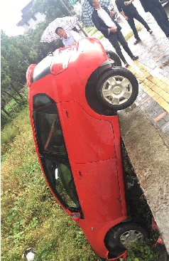 被撞后滑下路基 轿车“金鸡倒立” 本报讯(乐清日报全媒体记者 郑露露 通讯员 徐昌波)10月15日上午,淡溪镇茅垟村路口发生一起两车相撞的交通事故,其中一辆红色的雪佛兰轿车在两车发生碰撞后并未停下,自动滑行倒入路边落差1米多高的路基下,所幸司机只受了点轻伤。 据红色雪佛兰轿车司机陈某介绍,当天他途经淡溪镇茅垟村路口时,前方突然出现一辆白色轿车,由于太近车辆还没刹车就一头撞了上去,陈某也被撞的“迷迷糊糊”的,车辆在向左偏移后却继续向前滑行,最终驶入了路边落差高1米多的路基下。三分多钟后,他在路人的帮助下,爬出了车。 白色宝马车司机孙先生称,当时可能雨天,加上左前方有一辆大型货车停放在那里,遮挡了其视线,因此在转弯时未看到左侧直行的车辆,才发生了事故。 目前事故还在进一步调解中。 轿车倒立。通讯员 徐昌波 摄 扫一扫 看视频 汪洋制作 |
