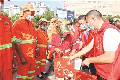 晴天一身灰、雨天一身泥,环卫工人战高温、冒严寒,坚守岗位、不辞辛苦,一年四季与垃圾、灰尘打交道,他们在环境保护、疫情防控、创建全国文明城市等工作中发挥了重要作用,得到了社会关注和关爱。当天下午,虹桥商会也组织了“情暖中秋,关爱环卫工人”活动,向全镇奋战在环卫一线的480名环卫工人发放月饼、牛奶,总价值4万多元。