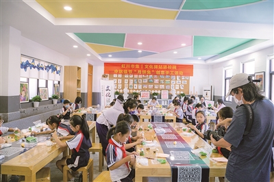 9月6日下午,在虹桥镇九小,孩子们欢聚一堂,用黏土制作成各种月兔摆件。看着自己的劳动果实,孩子们特别开心。