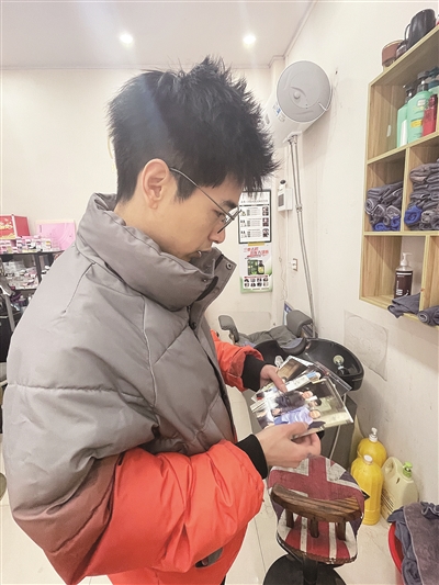 日前,记者来到石帆街道名为摩卡mc发型私人订制的理发店,见到了这名有爱的理发师。