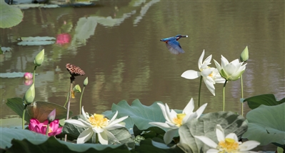 翠鸟与夏荷。范道敏 摄 |