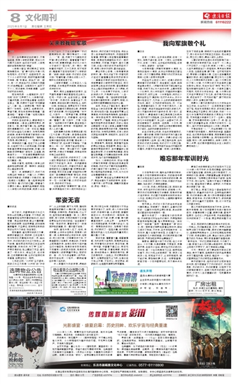 后来,我迷上了看战争片,着迷于那些金戈铁马的故事;喜欢读军事书刊,研究地图沙盘。每当看到荧幕上红旗漫卷,听到冲锋号角响起,血脉里总有一种东西在激荡。特别是临近“八一”建军节,广播里、电视上开始循环播放那些熟悉的旋律时,我的心绪总会飘回那个趴在父亲背上看露天电影的夜晚。眼前是晃动的光影,耳畔是电影的对白、发电机的轰鸣,还有父亲低沉而坚定的歌声,穿越时光,在记忆深处回响。