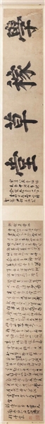 张弼在题记中云:“乐清八岁童张环来予云间,而予甥俞寰索书此四字。成化甲辰十一月二日拜圣节回记。东海翁。”成化甲辰即成化二十年(1484),其时张环以神童荐举为翰林院秀才,在途经松江时,挥毫写下了这四字,由此一段老少书法大家墨迹交相辉映的佳话便流传下来。如道光间姚楗在卷后题跋赞道:“以翁负一代重望,迺为八岁童作跋尾,奖掖后学,乐取人善,雅量殊不可及。”最末题跋者许威亦云:“署书乃八岁童张环书,东海为之题记,后人亦加珍惜,环亦幸矣夫。”