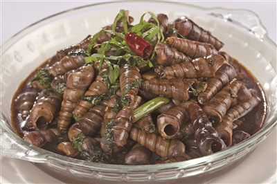 同时推荐黄书记的,还有一道望潮烧阑胡。说实话,到底是该写望潮还是网潮,我也不知道。大蛰说,叫望潮吧,望着潮涨潮落更有味道些。我没有亲手烧过这道菜——太难烧,不但对火候把握的要求很高,而且对食材的要求也很高。比如望潮的块头要选小个的,半径一厘米左右的那种,而且在烧制前要经摔打揉捏,据说这样才会脆嫩可口。我曾烧过一次望潮,明明熟了,可就是咬不掉,就对望潮望而却步了。至于阑胡,要用“网隼”(我也不知道怎么写,音译),花阑就吃不出那种味道。而且烧熟的“网隼”要是弯的,这才说明是活的。当然,如果家里吃,买的肯定是活的。
