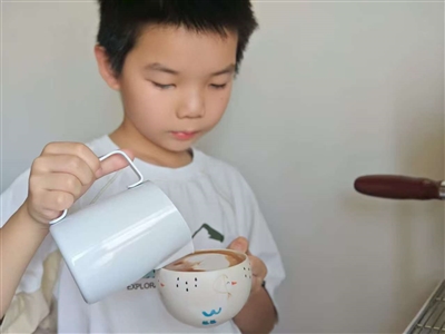 2023年,陈女士购置咖啡机后,开始学习咖啡豆的产地、烘焙深浅和研磨精细度的知识。“对我这种‘咖啡小白’来说,自己在家做咖啡可玩性和包容性比较强。”陈女士说,一开始她主要做牛奶加咖啡浓缩液、果汁加浓缩液或者饮用水加浓缩,当传统的拿铁、美式做熟练了以后开始尝试学习拉花,也带着孩子一起感受动手的乐趣。
