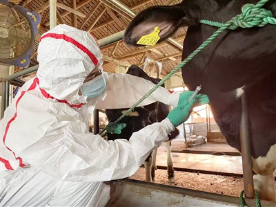 虽已出伏,暑热未消。乐清市动物疫病预防控制中心工作人员深入养殖场,为奶牛进行布病监测,从源头保障畜牧业安全与公共卫生,为养殖户送去“技术清凉”。