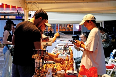 现场,芙蓉麦饼、番薯黄夹、白象香糕等乐清特色小吃香气四溢,细纹刻纸、黄杨木雕、乐清石雕、银器及弓箭制作等非遗技艺,让学子惊叹不已。互动区,生动有趣的套圈、抽奖活动吸引了不少大学生参与,其中还有不少国外留学生的身影。来自哈萨克斯坦的Yeskendir参加了互动活动后说,对雁荡山的风光非常向往,想邀请自己的好友们一起去看看。