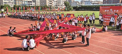 虹桥实验中学学子国庆献礼。陈冰雷 摄