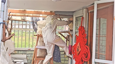 接到报警后,大荆消防救援站立即出动赶赴现场。到达居民家中后,消防救援人员首先对现场环境进行勘察,发现马蜂窝附着在屋檐下外侧杂物柜旁,位置隐蔽且下方常有居民走动,直接摘除存在马蜂蜇人的风险。为确保安全,消防救援人员迅速做好防护措施,穿上防蜂服、戴上防护手套,同时提醒居民关闭门窗,避免马蜂进入室内。