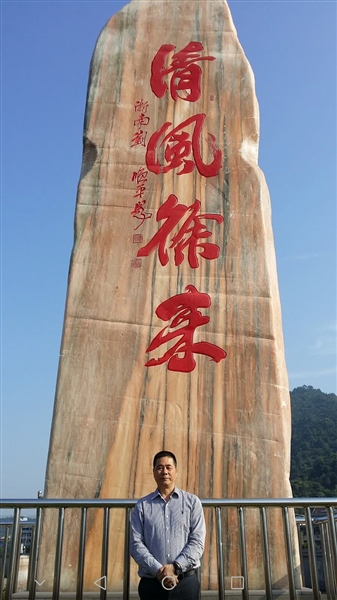 ■林新华刘顺平,笔名寒川,斋号霜剑轩、瓶斋。1958年出生,现为浙江书协会员、温州市书协理事、乐清市书协副主席,柳市镇文联、中雁荡山文化艺术研究院、乐清市收藏家协会、乐清市金鳌书画院、中国集邮网艺术顾问。这个留着平头,穿着牛仔裤,浑身散发出青春气息的书法家,与那些蓄着长发髯须和穿着传统服装的艺术家浑然不同;他高伟儒雅与众不同的外表和书艺上的卓然造诣,为人们津津乐道。临池苦练五十春了解刘顺平的人都知道,他幼时聪颖、虚心、好学,秉赋极高。其父与叔公均爱好书法,耳濡目染受其熏陶,13岁从颜体、柳体入门,再转临三希堂的名帖,像二王、张旭、怀素、苏黄米蔡、王铎、傅山等通临研习,继追汉隶、魏碑,埋头一临就是二十个春秋。 秉承勤奋好学、敏思笃行、虚心求教,是刘顺平取得书法进步的内涵表现。1982年刘顺平初识施正、陈云谷等当地书法名家,经潜心指导,眼界大开。那一段时间,刘顺平的书法突飞猛进,在书界崭露头角、名声鹊起。 上世纪九十年代,刘顺平首次到杭州灵隐寺游览,仰头看到“大雄宝殿”四个鎏金大字,大受启发,伫立着反复琢磨其运笔方法,了然于心才欣然离去。十几年前,刘顺平在乐清偶遇一位书法名家,在讨论有关书法问题时,诚恳、严肃而语含双关地对刘顺平说了一句话:“你写的字太美了。”刘顺平闻言褒贬难揣、诚惶诚恐,反复悟解书法前辈的话意,百思不得其解,后终于明白,他暗示刘顺平:你的字过于中规中矩,太像他人的字,缺乏书法创新。这对刘顺平的感悟和震动非常巨大,重新审视自己的书法创作方法,同时更注重从近当代中国书法家沈曾植、王世镗、黄宾虹、林散之、沙孟海的苍茫雄浑笔法中汲取营养,并吸收日本古代三笔三迹的用墨、结体、布局方法,兼容并蓄,追求书法识别度和强烈视觉冲击力;并取百家之长,融合自己个性化笔法,从此开启了书法个性化的创作之路。这一努力又是近二十个年头,终于形成了由圆入方、用笔老辣、八面出锋、气势开张、圆转健逸、气势磅礴、耳目清新、独树一帜的书法风格,确立了其在书法界的地位。修成正果艺不辍 一分耕耘一分收获。数十年醉心书法艺苑的刘顺平,其书法成就引起广泛关注,书艺创作事迹陆续见诸报端。二十年来,《美术报》《书法导报》《温州日报》《乐清日报》《人民日报——海外版》《中国钱币界》《画坛》等数十家报刊、网站先后报道刘顺平事迹。作品在全国各级书法大赛中获奖,大量作品被有关图书馆收藏,入选《国家名片》——邮票上的《十大书画艺术家》及《中国邮政——中国当代书法百强》等选本。2021年初,刘顺平2014年为纪念明朝政治家、文学家刘伯温诞辰七百周年,向坐落于温州以黄鹤楼仿建的塔楼题写“伯温楼”匾额,深受行内专家赞赏。 多年来,人们经常看到刘顺平忙碌的身影,其书法作品先后参加北京、天津、上海、杭州、绍兴、韩国等地书画展览,在温州、乐清举办了四场次书法个展,书法名家和书法评论家好评如潮。温州著名书法家陈铁生曾对他人说过:“温州数百年书法,名家才能出其一二;乐清百年内出了施正、陈云谷先生,还有一个是刘顺平,非常不容易。”后来知名记者陈俊贤为刘顺平在人民日报书画艺苑专版上刊载了“走进大草”的文章中,首称“乐清书坛三杰”,可谓前后呼应,一脉相承,评价颇高。 著名学者苏渊雷1989年游雁荡山顺道柳市,看了刘顺平书法,大为赞赏,特意约见刘顺平,欣然被他称为“寒川小友”的刘顺平赋诗一首:醉素颠张韵有余,佯狂稍喜见真吾。一言快涩君须记,本色当行得意初。 刘顺平的书法,疾似行云流水,笔走龙蛇,如飞瀑溅珠;笔锋转处,戛然而止,似金钩倒挂,如车刹毂,运势于千变万化之中。缓如犁田拙重,如刻如雕,庄穆厚实,质朴无华;其行笔不走常势,出神入化,多取奇巧诡异之笔,形成一种迥然不同于其它书体的大家书风。 2017年12月,刘顺平迎来一个不平凡日子,他倾注多年心血打造的“刘顺平书法艺术馆”正式开馆。这个面积达500多平方米的艺术馆,坐落在柳市镇柳青南路,是温州市唯一由个人创办的书法艺术馆,每天吸引众多艺术名家、书画爱好者和藏友前往瞻顾,成为乐清一道亮丽的艺术风景线。实至名归的刘顺平常说艺无止境,没有终点只有起点;他安下的这个艺术新家,是新的扬帆启程,在这座艺术殿堂里必将绽放出更加绚丽多彩的艺术人生。踏访名山留翰墨 刘顺平喜爱山水,经常挂在嘴边的一句话:“我是喝着中雁荡山的水长大的。”刘顺平尤其对风光旖旎、钟灵毓秀的中雁荡山情有独钟。莽莽的山脉和澈澈的碧水孕育了刘顺平勤奋、聪慧、敦厚和艺术灵感。 遐迩闻名的“柳川书画社”的前身“柳川书画学会”,于1984年由施正先生为首的乐清老一辈书画家在白石发起成立,刘顺平作为初期会员,其后跟随柳川书画学会名家游历了当时尚未开发的“处女地”中雁荡山。苍茫恢宏、连绵起伏的峰峦,为他日后创作气势磅礴的大草积蓄着激情和能量。 九十年代初,在乐清已小有名气的刘顺平应中雁荡山风景管理处邀请,为当时在开发中的八折瀑景区的一条拱桥题写“龙游”二字。其后,刘顺平与白石的文化名人交往甚密,创作了大量赞美中雁荡山风光的诗词书法。多年前,刘顺平受聘乐清市中雁荡山文化艺术研究院顾问,频繁参与研究院举办的各种