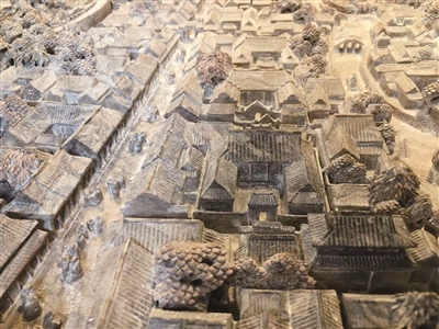 图为易永森石雕作品“乐清古县城”局部,表现的是北大街担水巷3号的前洪宅。
