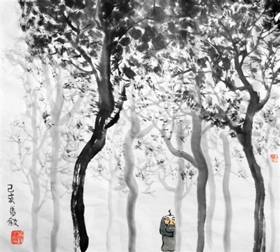 2013年的春天,有一次,阿人从济南来电话,说,你与老车(车前子)搞一个画展吧。我说,我不搞,要搞就搞老车的吧,与当地的一些作者做一些书画交流。这一年,我刚开始画水墨,画了很多的鸟,各式各样的鸟,还有船。这时,赵刚从南京过来,阿人从济南赶回相聚。去的是雁荡山的能仁客栈。赵刚与办能仁书院的苏羊是《中国新小说》网站的文友,那天下午,阳光大好,我与阿人谈起老车画展的策展的事。在雁荡山能仁客栈的午后,谈策展的事,感觉很好。老车的画展的事,就这么定了下来。那次活动激发了我的一种玩性,这玩性,就是对水墨的尝试,把水墨看成是另一种写作。那之后,阿人不再去济南,而是在雁荡山住了下来,并租了一座小屋,一块山地,做了一个山里人,过起了真正的山居生活。