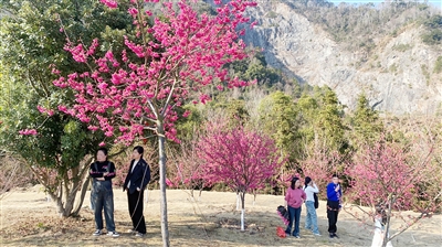 “去年就去马岙看过樱花,花儿非常美,适合亲子休闲游。今年听说有抖音大赛,我们趁春节假期过来玩。带女儿爬爬山、看看花、拍拍照。马岙的游乐项目很多,女儿喜欢彩虹赛道,‘蹦蹦云’则是她的最爱,女儿说还没玩过瘾,我们准备周末再去玩。”来自虹桥的游客陆珍说。
