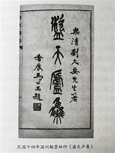 笔者少年时,湖横东岙一位赵姓老先生借给笔者一本封面由马公禺题签的《盗天庐集》,马公禺即近代著名书法家马公愚也。后来抄录了其中第六卷楹联部,手抄本至今尚存放在笔者的书法艺术馆展示。