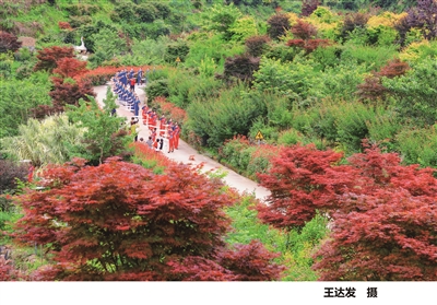 眼下,雁荡山红叶园的绣球花开得正艳,吸引游客争相打卡。雁荡山红叶园由大荆乡贤徐金才、蔡汝青、曹晓法等人一起投资,将荒山建成红叶园,种下红枫、樱花、绣球花等不同品种花木6万多株。