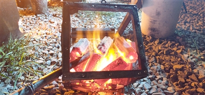 乍一看,它有点像杠铃,10余斤重,两头分别是一个正方形的炭笼,四个面中有一面可打开,用来加入炭火。连接两个炭笼的是一根长约1.8米的铁棍,表演者就站在铁棍中间,通过上下抖动铁网炭笼,使木炭产生火花,形成类似“火树银花”的美丽景象。“别看这火壶构造简单,其实每处都有门道,是我们努力研究和尝试出来的。你看今天用的这个炭笼大一些,网眼也小一些,不仅装的炭多,还可以让星火更密集。”王祥称,炭笼表面用的是特制耐高温的铁,网眼大小要适中,抖出来的火花才好看。而这铁棍他们曾试过用藤条,但由于温度太高,藤条不好用,最后还是采用了有点弧形的铁棍。