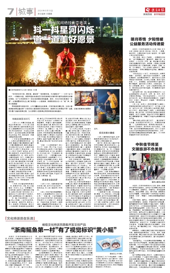“东风夜放花千树。更吹落、星如雨”“铁树银花落,万点星辰开”……9月7日19时许,一场精彩纷呈、绚丽夺目的非遗技艺打铁花表演在乐清市现代都市田园综合体精彩亮相,为广大市民带来了一场古老浪漫的视觉盛宴。其中,作为打铁花表演的“彩蛋”,乐清湖雾铁花队还上演了新项目——火壶表演,惊得现场观众们一片“哇”声,直呼大饱眼福!